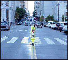 As I drive around the side streets of town, more and more I’m noticing these little “Yield to Pedestrian” signs plopped down right in the middle of the road. While I initially assumed this was part of some federal campaign being carried out by the Department Of Pointless Signage or whoever it is that also puts up those signs that say, “Watch Out For Deer That Haven’t Passed Their GED’s”, I have since discovered that it is actually our local city government who has taken the initiative with the intent of improving public safety.